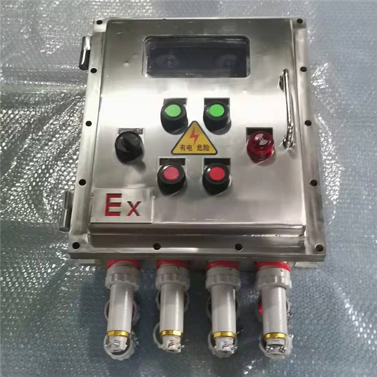 不銹鋼防爆插座箱外殼采用304或者316不銹鋼板焊接而成,殼體壁厚3mm,法蘭8mm,不銹鋼防爆配電箱具有良好的防爆,防腐等性能,不銹鋼緊固件。防爆箱外殼為隔爆型結構,內裝斷路器,交流接觸器,熱繼電器等元件,以及防爆按鈕、指示燈、轉換開關、電位器等防爆元件,可根據客戶要求自由組合。